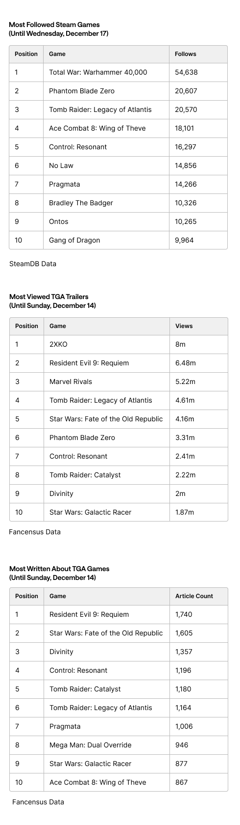 Notable Mentions: Phantom Blade Zero generated 20,607 Steam followers, with Tomb Raider: Legacy of Atlantis managing 20,570. Check out the full ranking below.